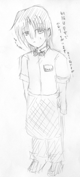 女の子の制服はバンダナとか胸からの普通のタイプのエプロンとかなんだけど、