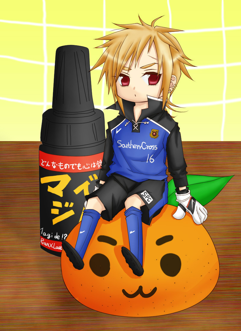 ちび飛鳥さんがでっかいマジックもってきゅこきゅこみかんにぱらちゃんの顔を描いた感じをイメージしてみました。