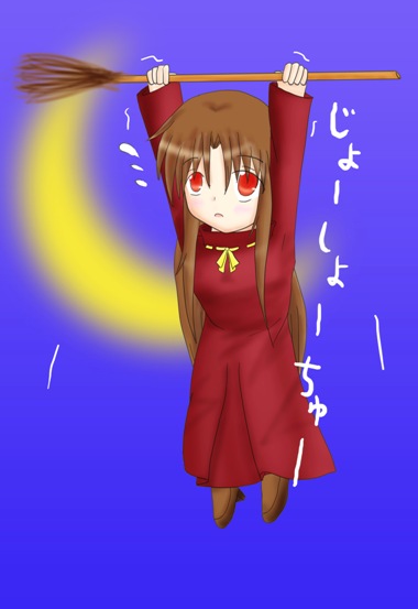 「ドジっ子設定を活かして、箒にうまく乗れず、ぶら下がってあたふたしてるという絵を勝手に脳内補完」