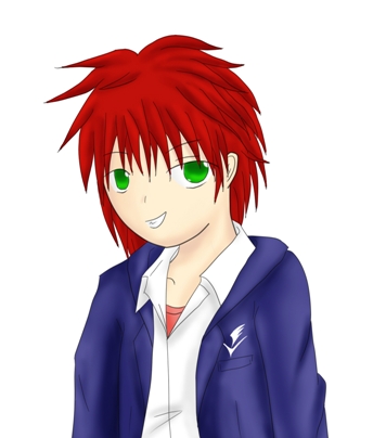 まずは最初に思いついた緑目に暗い赤髪な感じで~