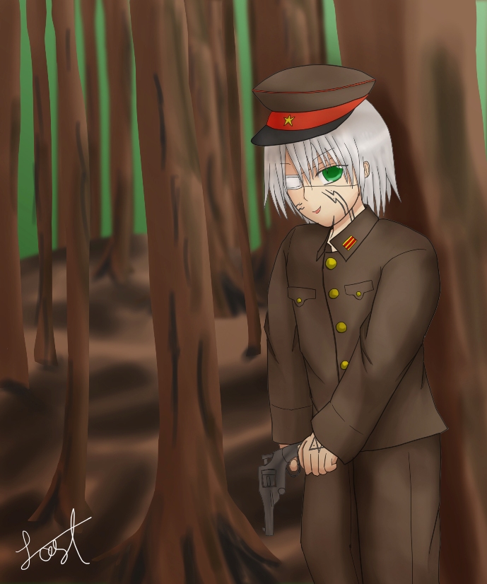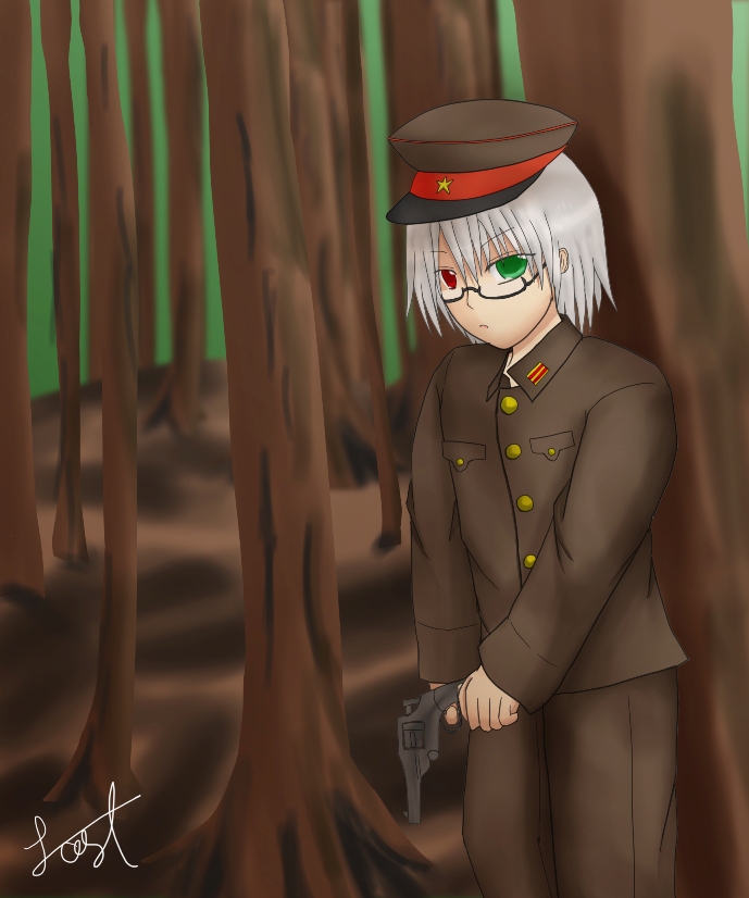 日本陸軍軍服に旧式拳銃の眼鏡を森林にぶち込んでみました。