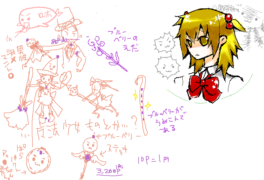 右上の金髪の可愛い子は葉茨さんが練習がてら描きました。