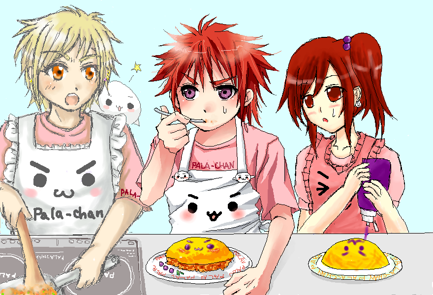 それぞれのパラオムライスにかかっているのはブルーベリーソースです。ケチャップじゃないよ。