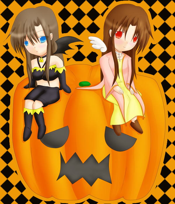 おまけに双子と顔の隠れちゃったかぼちゃだけのイラストです。