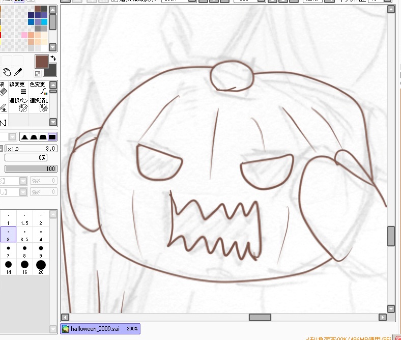 ハロウィンイラスト大体半分くらいまで?描き終わりました。