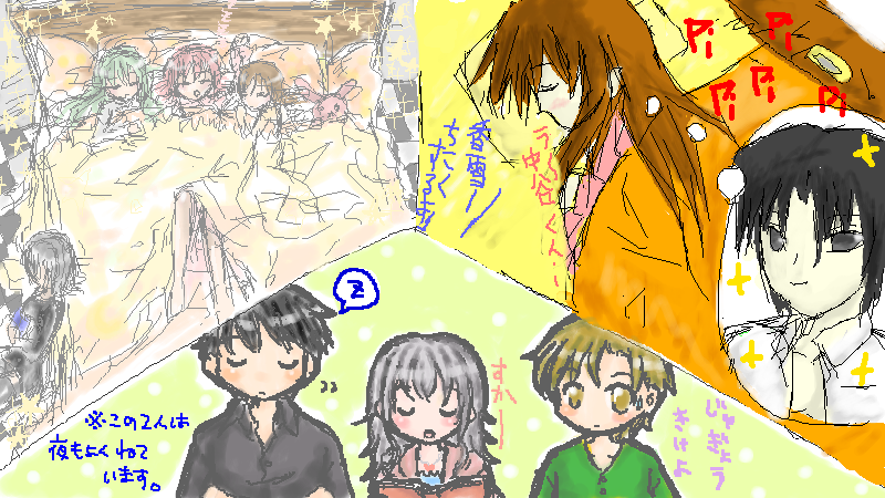 その結果…何の打ち合わせもしてないのに3人とも寝ている絵に!!